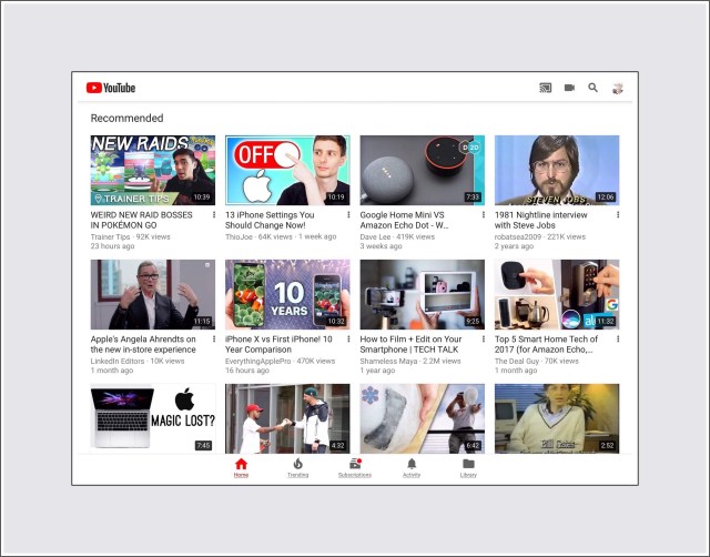 When you first open the app you’ll see ‘Recommendations‘ which includes a combination of new content from channels you subscribe to as well as YouTube’s recommendations for new content on topics you may have viewed in the past.