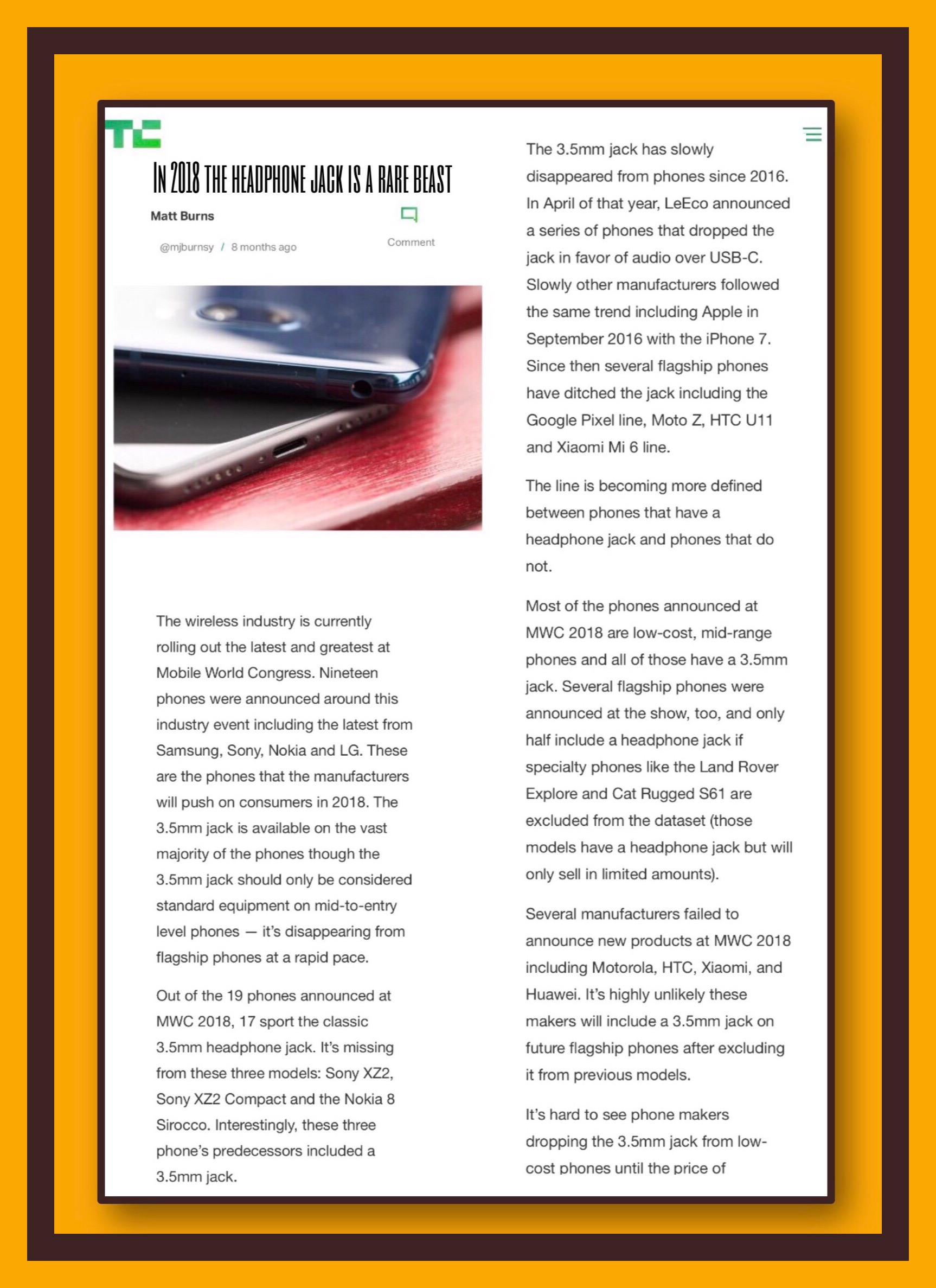 TechCrunch’s In 2018 the Headphone Jack is a Rare Beast