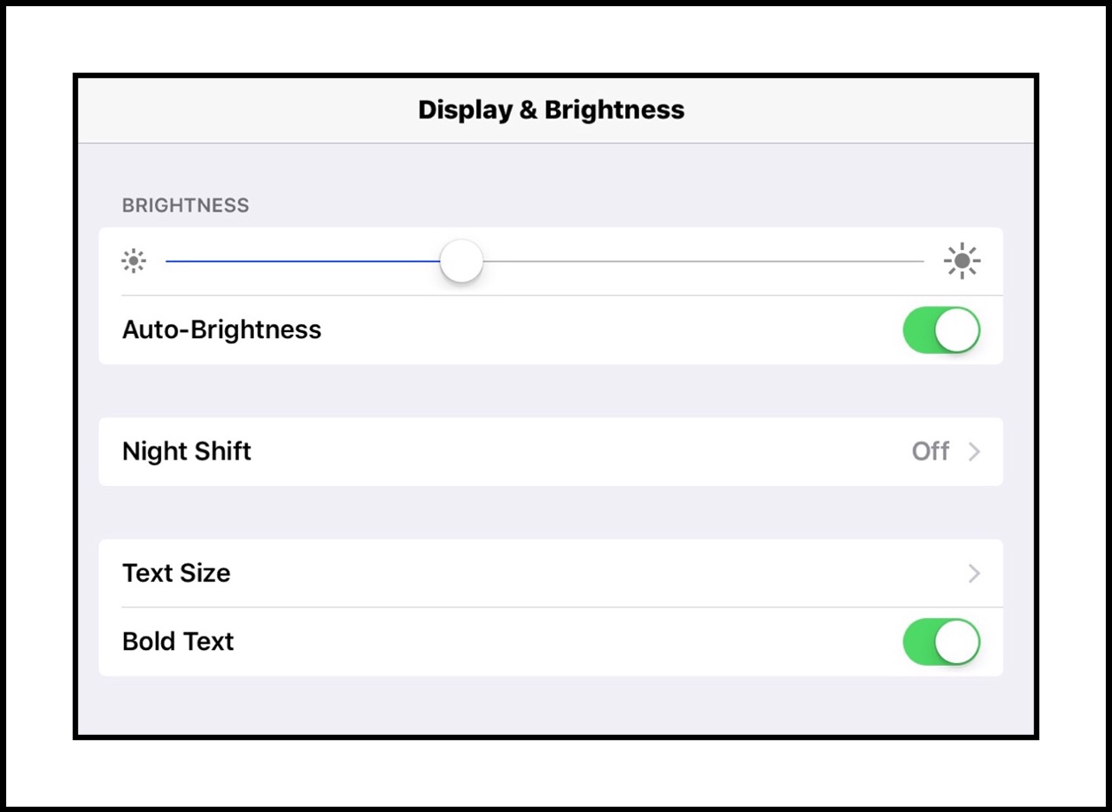 Typical display settings on my ios devices